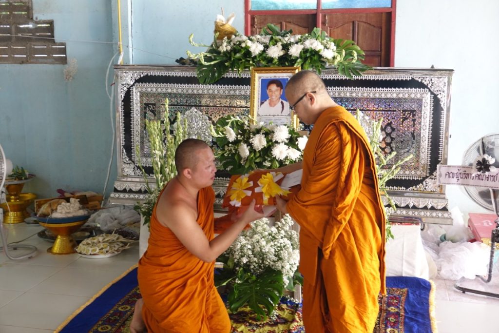 พิธีสวดพระอภิธรรมจัดขึ้น ณ ที่พักสงฆ์หนองนกเขียน ตำบลทุ่งชมพู อำเภอภูเวียง จังหวัดขอนแก่น โดยมี พระกิตติสารสุธี, ดร. รองอธิการบดี เป็นประธานในพิธี และได้แสดงพระธรรมเทศนา ในช่วงค่ำ เพื่อแสดงธรรมอุทิศส่วนกุศลแด่ผู้วายชนม์ สร้างความซาบซึ้งแก่ผู้ร่วมพิธีเป็นอย่างยิ่ง