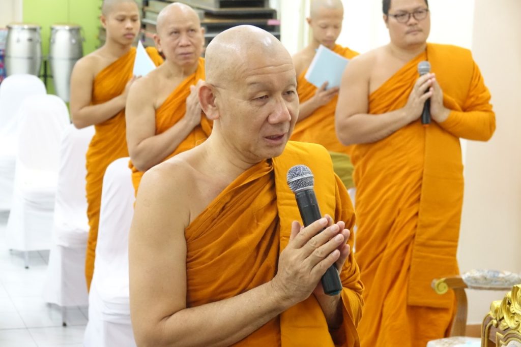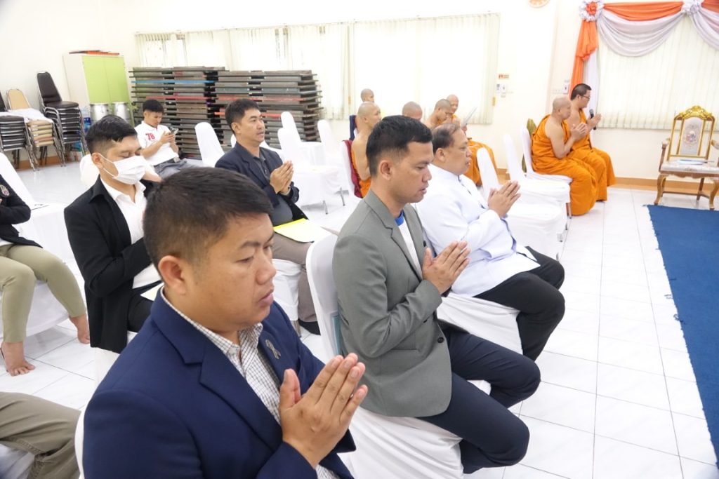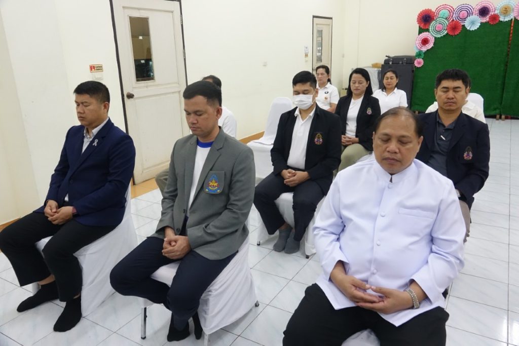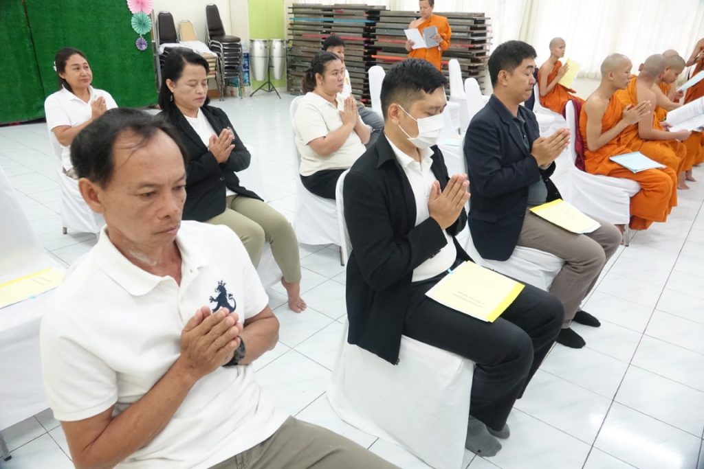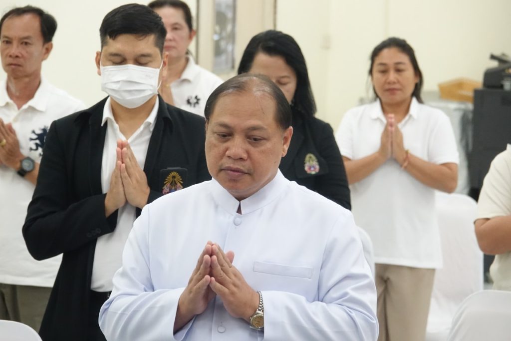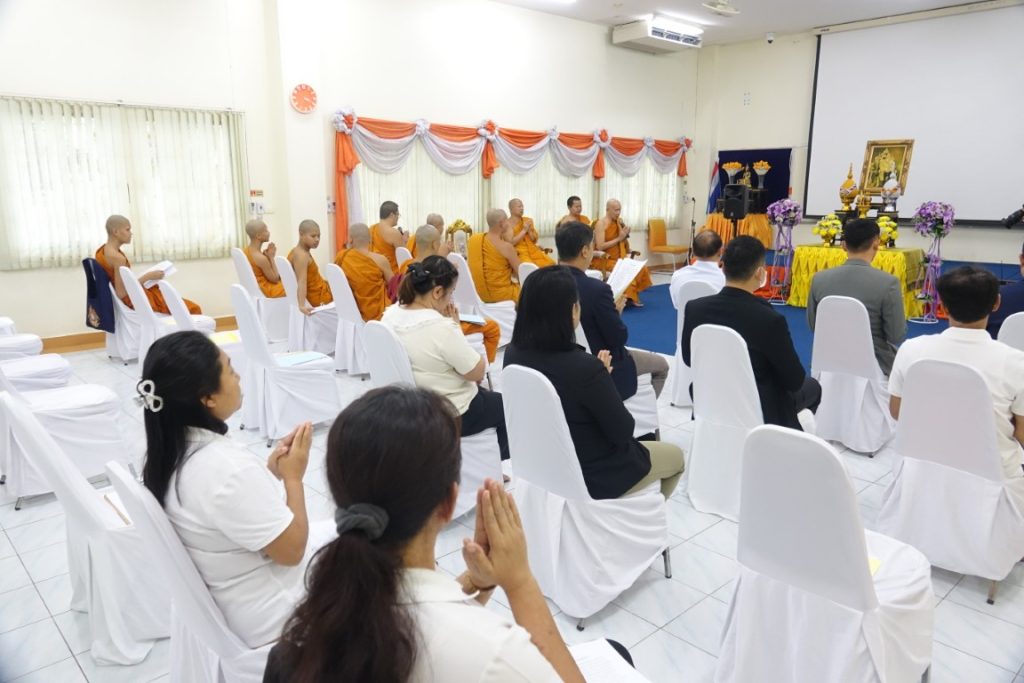 เวลา 15.00 น. พิธีกรอาราธนาประธานจุดธูปเทียนบูชาพระรัตนตรัยและนำกล่าวคำบูชาพระรัตนตรัย จากนั้น เวลา 15.10 น. ได้ประกอบพิธีบำเพ็ญกุศล โดยนิมนต์พระสงฆ์เจริญพระพุทธมนต์ น้อมถวายเป็นพระราชกุศลแด่ในหลวงรัชกาลที่ 9