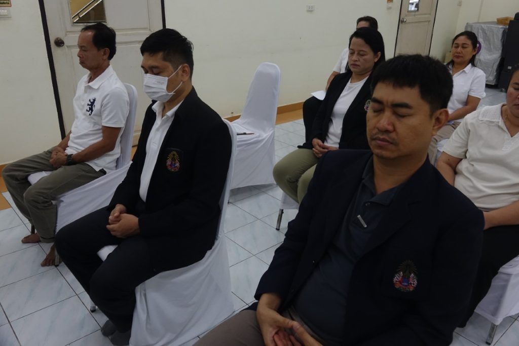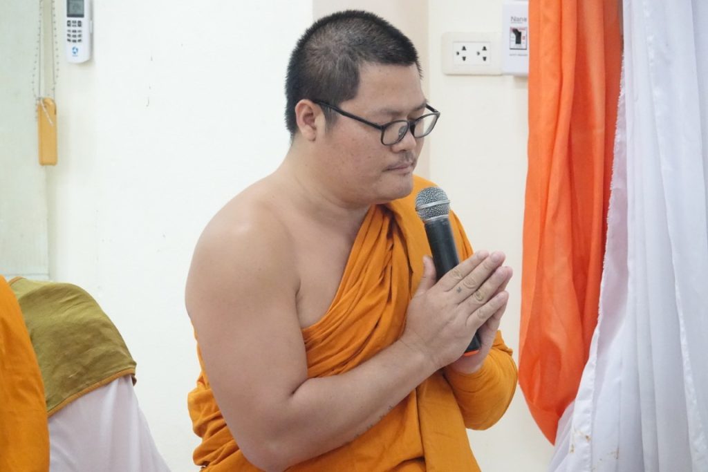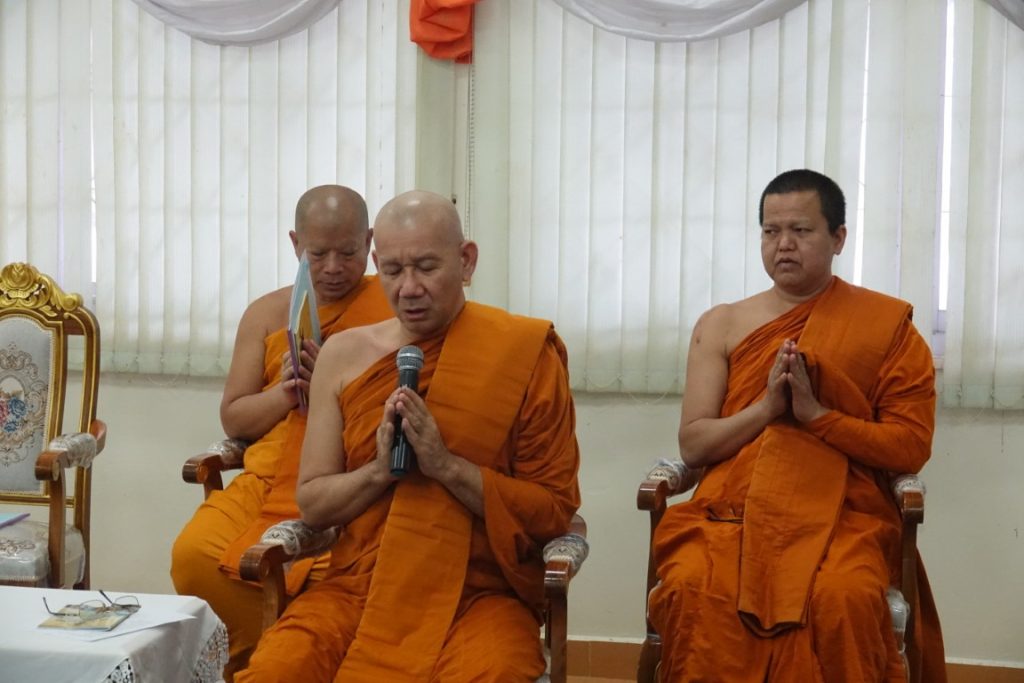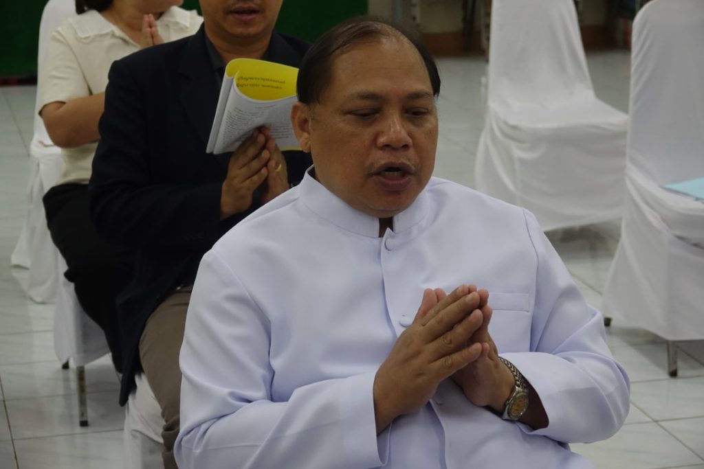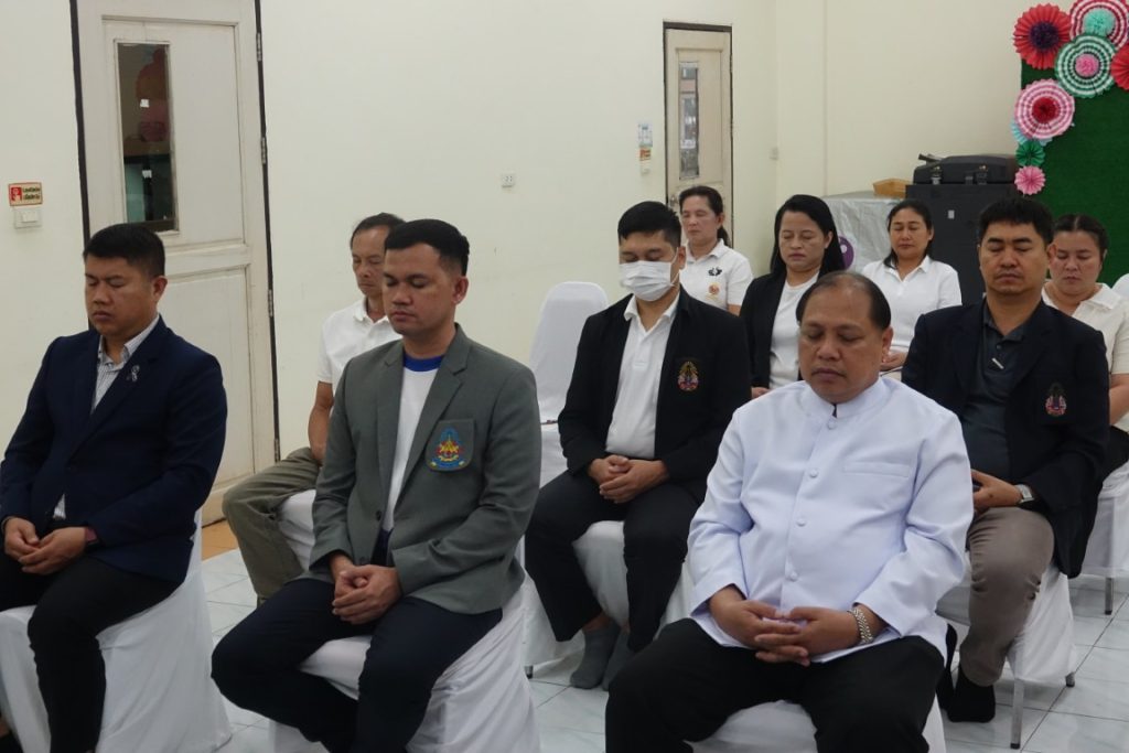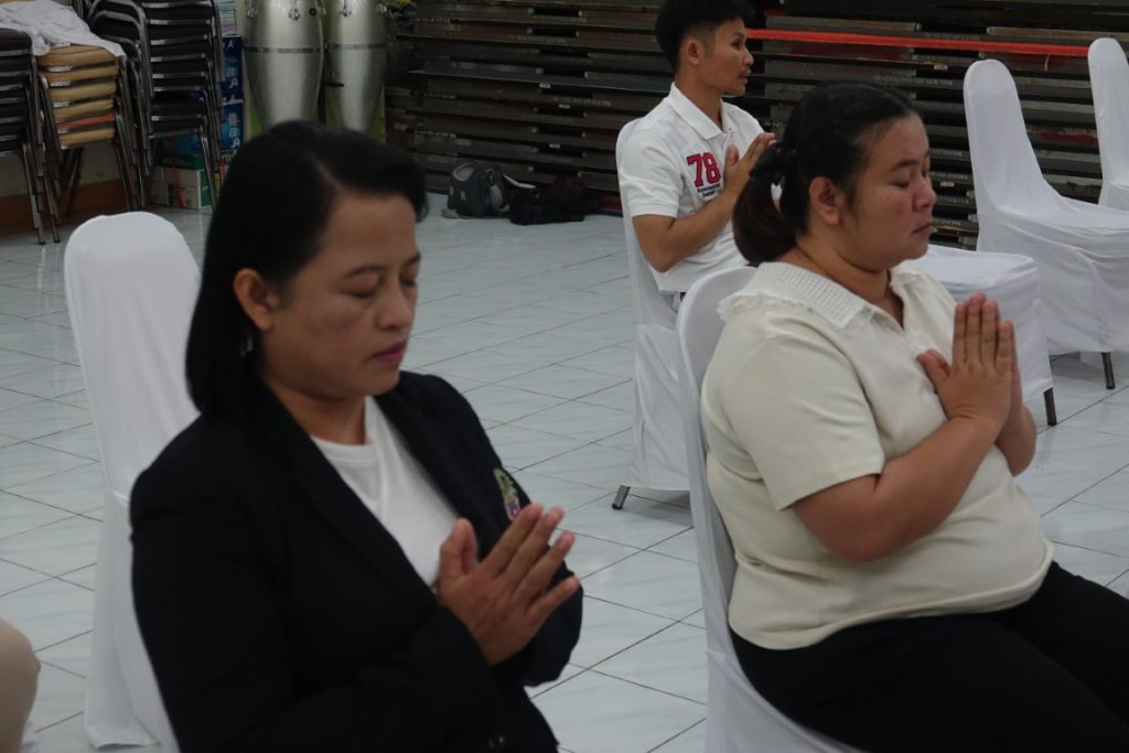 เวลา 15.00 น. พิธีกรอาราธนาประธานจุดธูปเทียนบูชาพระรัตนตรัยและนำกล่าวคำบูชาพระรัตนตรัย จากนั้น เวลา 15.10 น. ได้ประกอบพิธีบำเพ็ญกุศล โดยนิมนต์พระสงฆ์เจริญพระพุทธมนต์ น้อมถวายเป็นพระราชกุศลแด่ในหลวงรัชกาลที่ 9