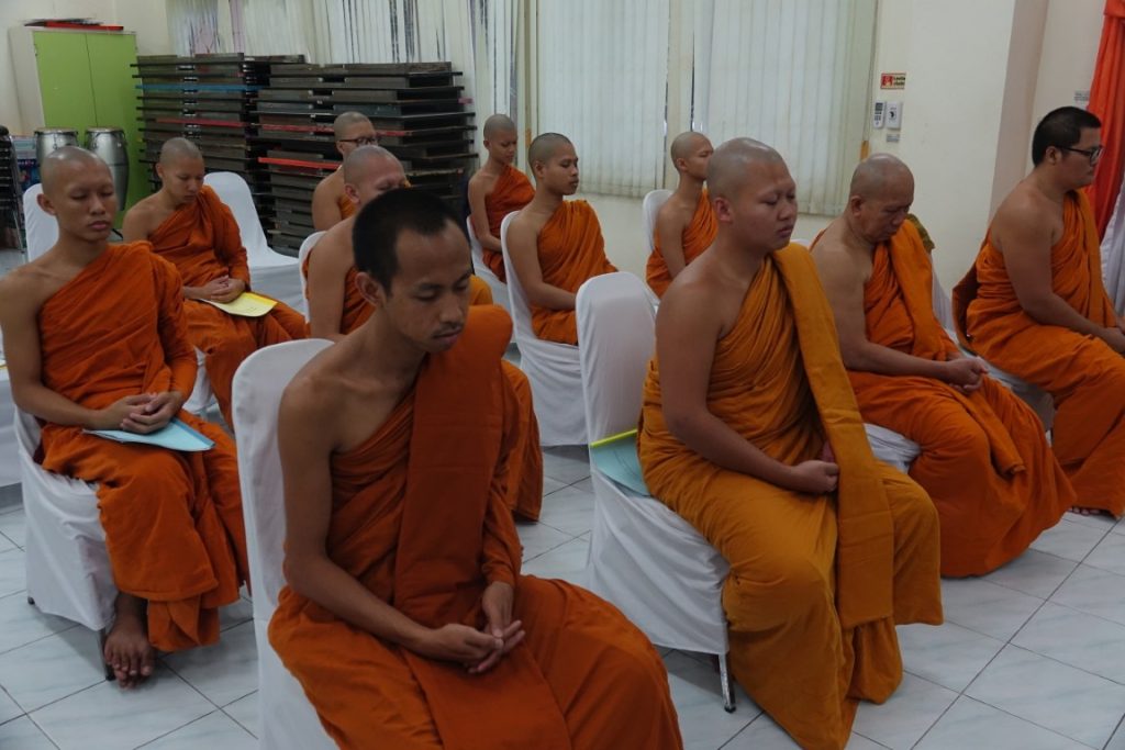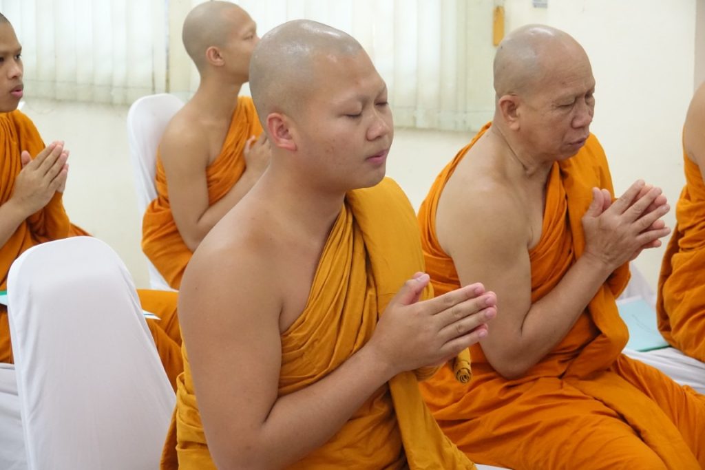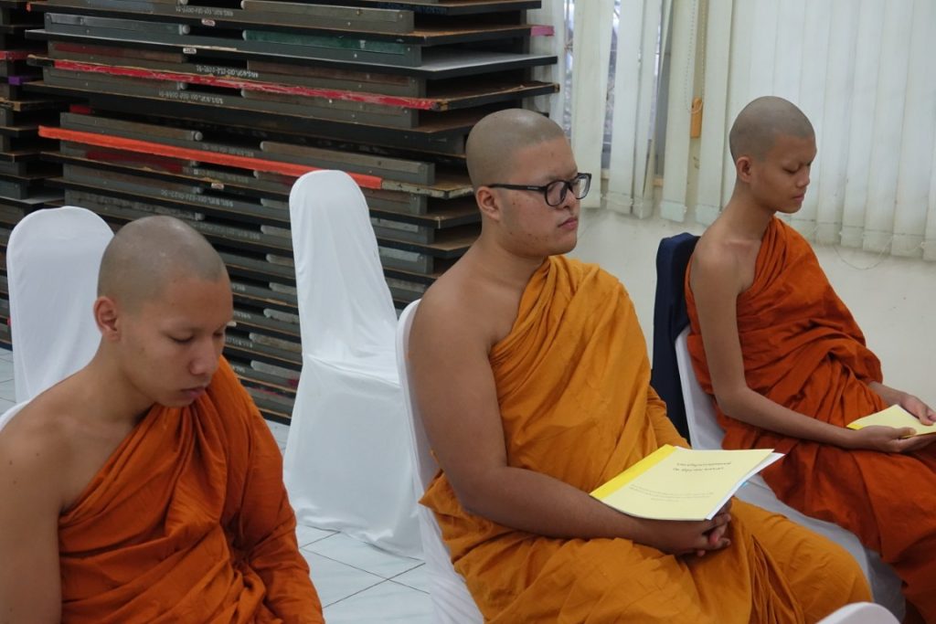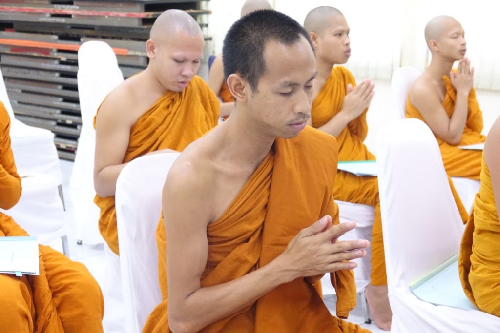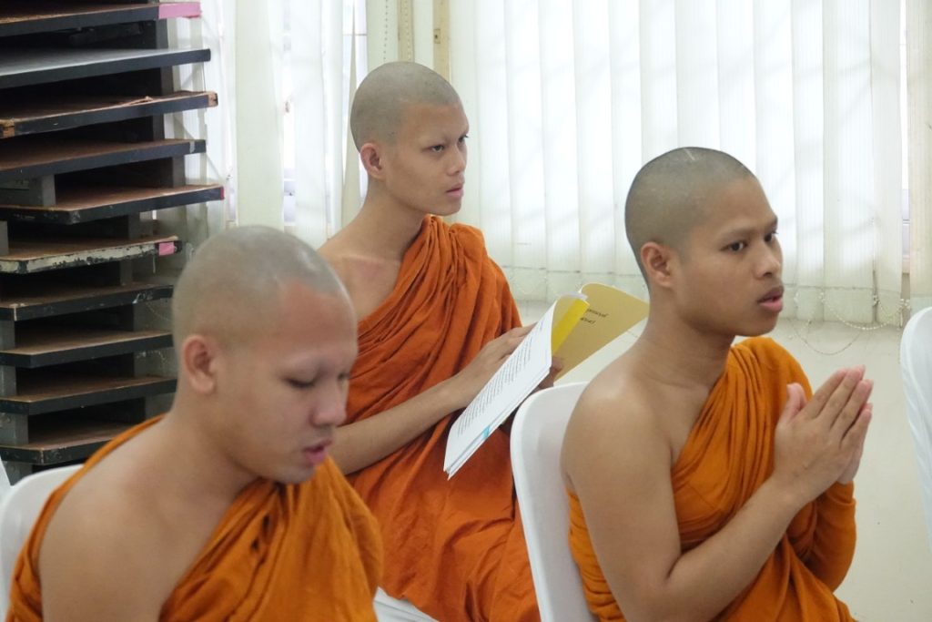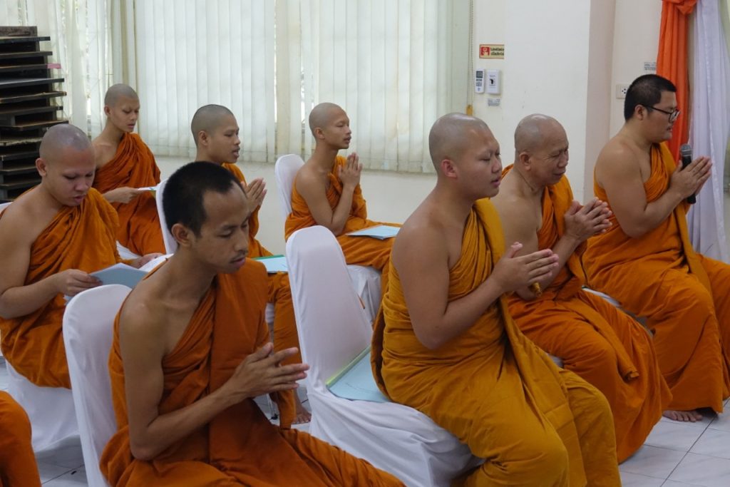 เวลา 15.00 น. พิธีกรอาราธนาประธานจุดธูปเทียนบูชาพระรัตนตรัยและนำกล่าวคำบูชาพระรัตนตรัย จากนั้น เวลา 15.10 น. ได้ประกอบพิธีบำเพ็ญกุศล โดยนิมนต์พระสงฆ์เจริญพระพุทธมนต์ น้อมถวายเป็นพระราชกุศลแด่ในหลวงรัชกาลที่ 9